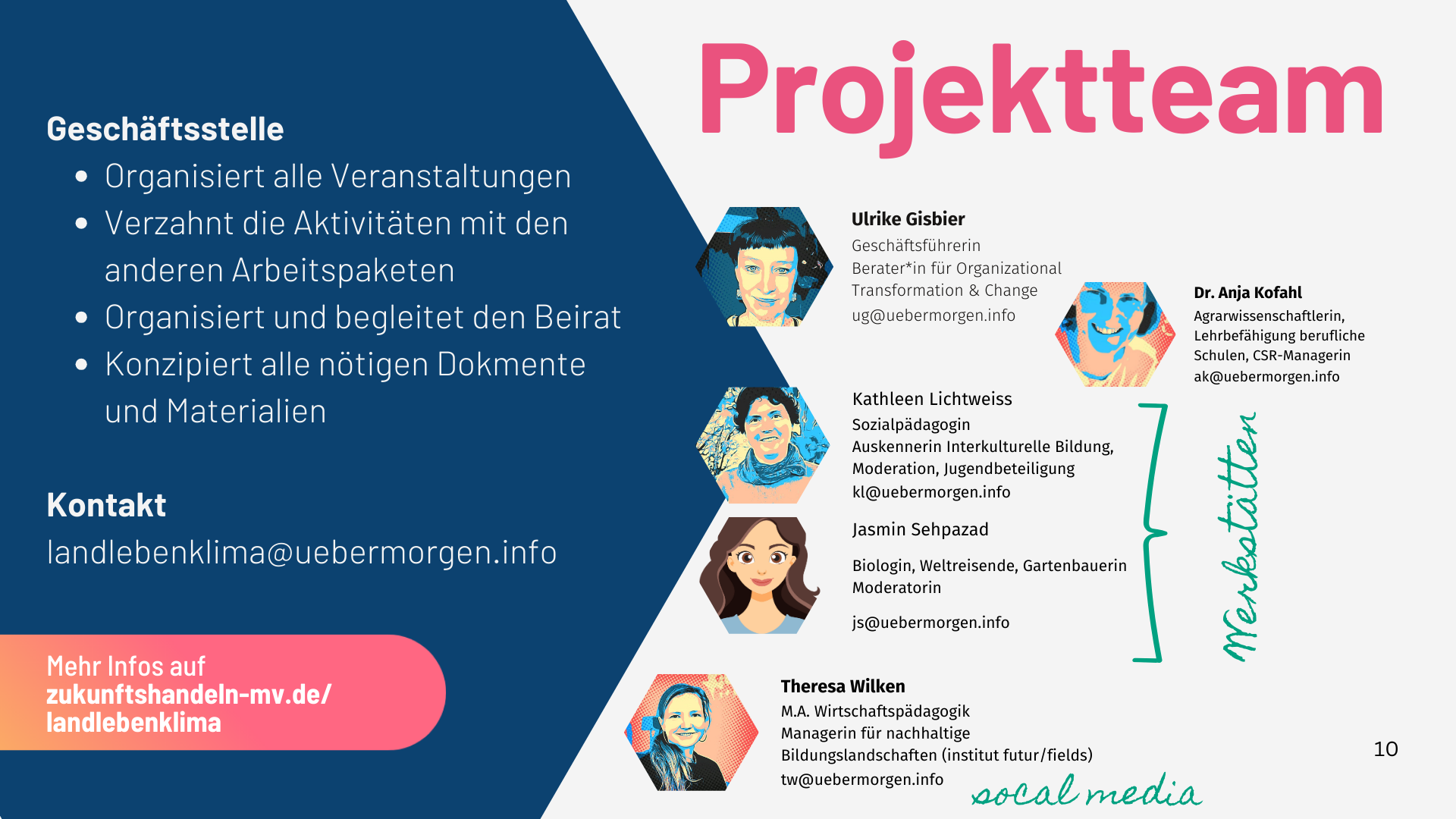Wir suchen junge Menschen als Zukunftsgestalter:innen. Klimaschutz und Klimafolgen sehen wir als wichtige Zukunftsthemen. 10 Klima-Projekte von jungen Leuten aus MV sollen zum Beginn der Berufsschuljahres 2025/2026 starten. Wir wollen dabei unterstützen, ein Jahr lang ein Klimaschutzprojekt durchzuführen. Die Projekte sollen einen WOW-Effekt für den Betrieb und auch nach außen für andere Azubis, andere Betriebe, Schulen, Menschen usw. haben. Sie sollen Lust auf Leben und Ausbildung hier, auf dem Land, in MV machen.